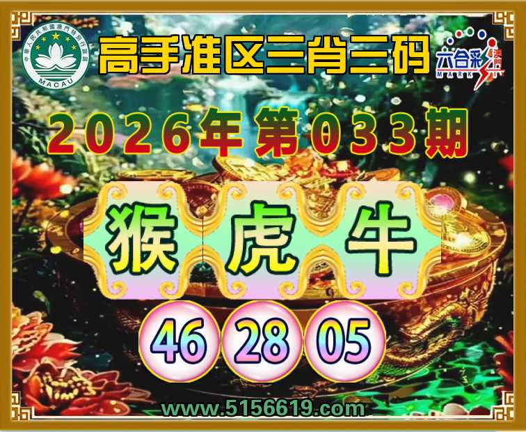 033期: 🩴《高手准区》 🩴三肖三码🩴【猴虎】【46.28.05】开:牛41准上榜高手