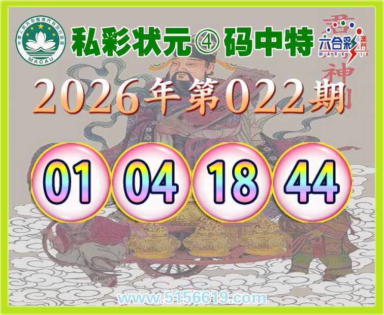 022期: 🍒《私彩状元》 🍒④码中特🍒【01.04.18.44】开:18