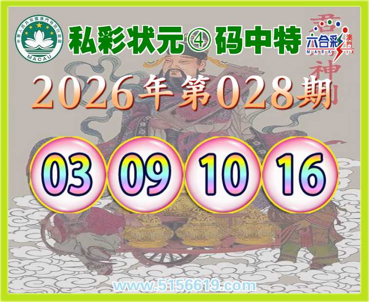 028期: 🍒《私彩状元》 🍒④码中特🍒【03.09.10.16】开:03