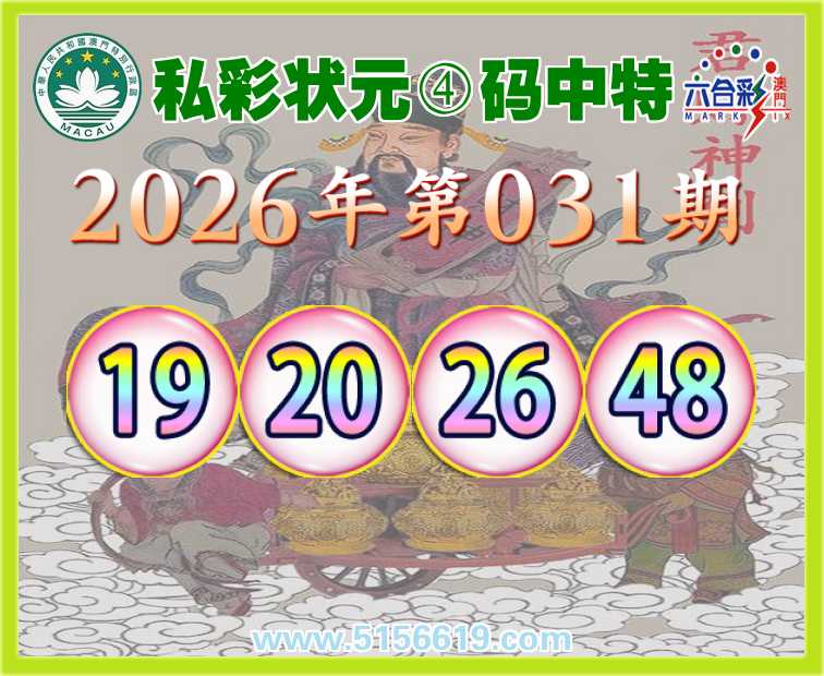031期: 🍒《私彩状元》 🍒④码中特🍒【19.20.26.48】开:26准上榜高手