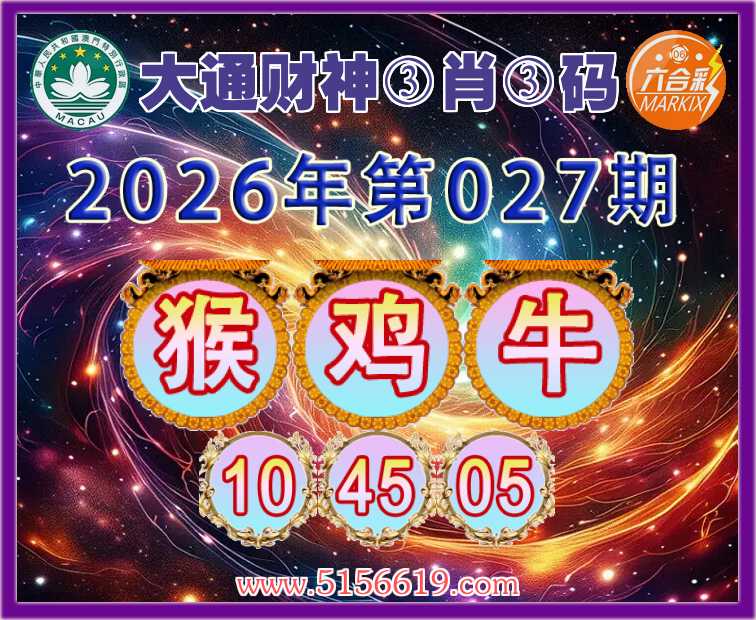 027期:【大通财神】 👘③肖③码👘【猴牛】【10.45.05】开:鸡45
