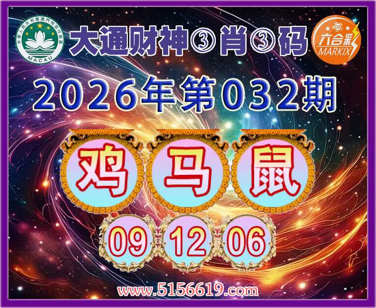032期:【大通财神】 👘③肖③码👘【鸡马】【09.12.06】开:鼠06